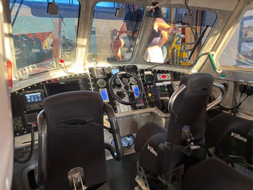 Aan boord vinden we alles wat je verwacht van een moderne reddingboot: GPS, AIS, radar, VHF-marifoons, digitale kaartplotters, en een geavanceerd intercomsysteem waarmee de bemanning onderling en met de wal kan communiceren, zelfs in de herrie van storm of branding. De stuurconsole is overzichtelijk ingedeeld, en de bemanning zit op geveerde zadelstoelen voor comfort bij hoge snelheid.